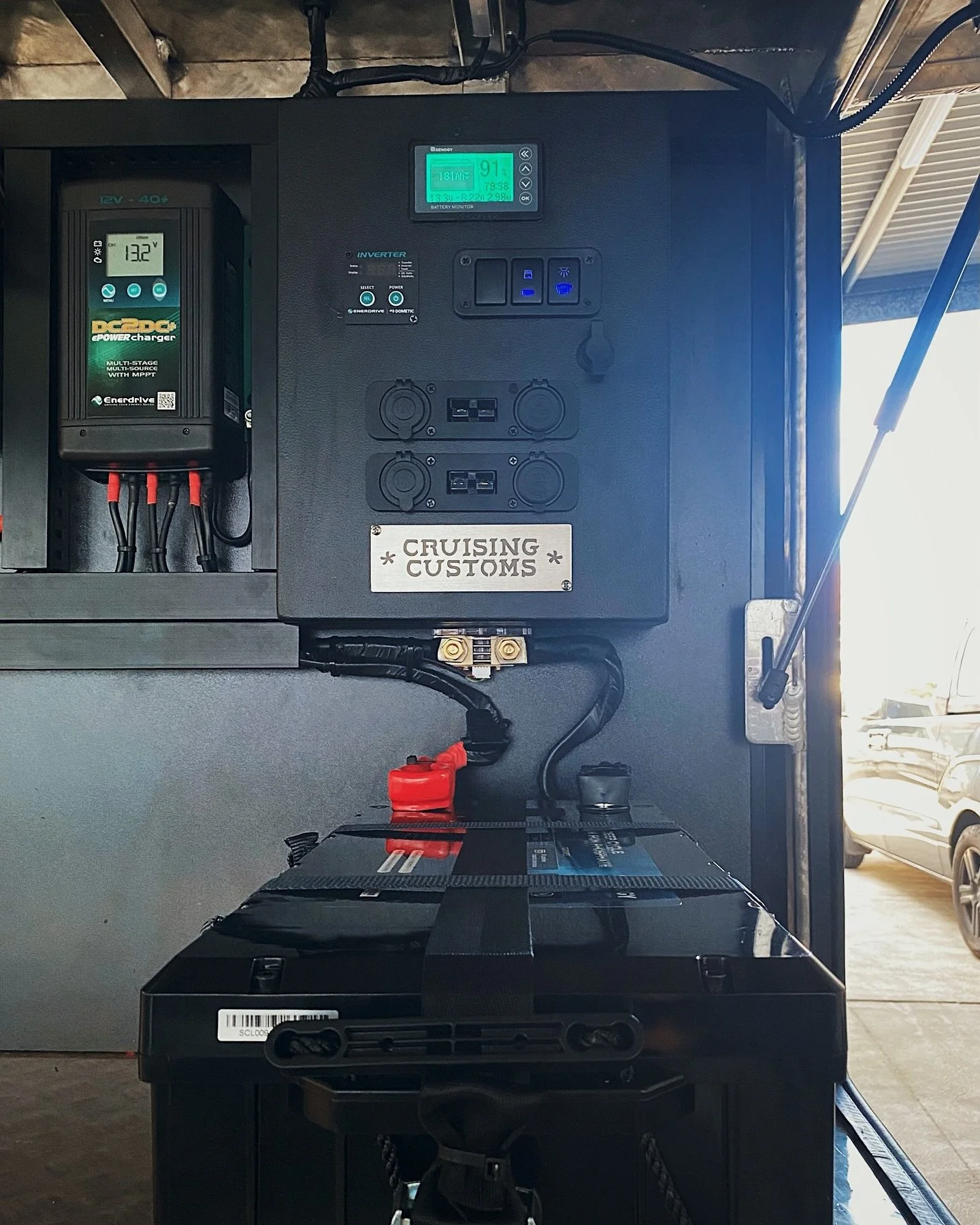 Scale your system to include as much as you need. Whether thatβs just a fridge, device charging and some lights, or a full fit out with lots of power, lighting and fun additions. Itβs your home for the road and Cruising Customs is ready to help you build it.